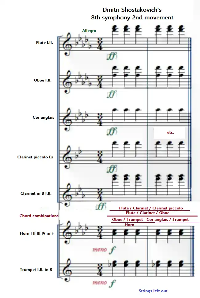 In general, the relationship between the clarinet and the orchestral instruments, within chord combinations, is to be judged on the register properties. Accordingly, most of the diverse sound combinations that exist in the relationship between the clarinet and the oboe are separated.