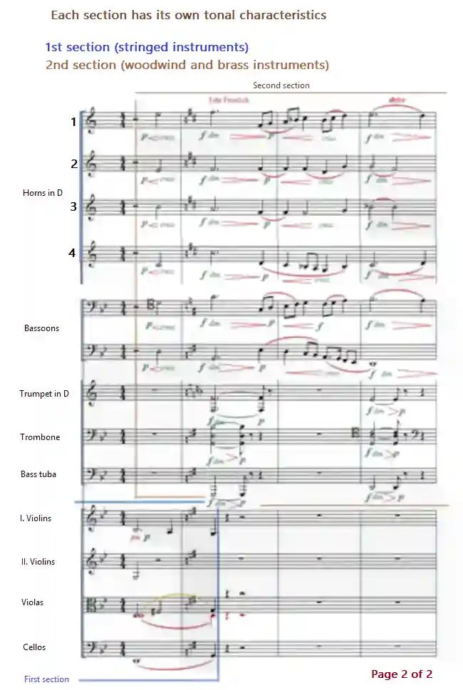 One of the most important means of structuring that is available in terms of sound. The abrupt change from the strings (1st section) to the winds (2nd section) contributes to this clarification of the formal structure.
