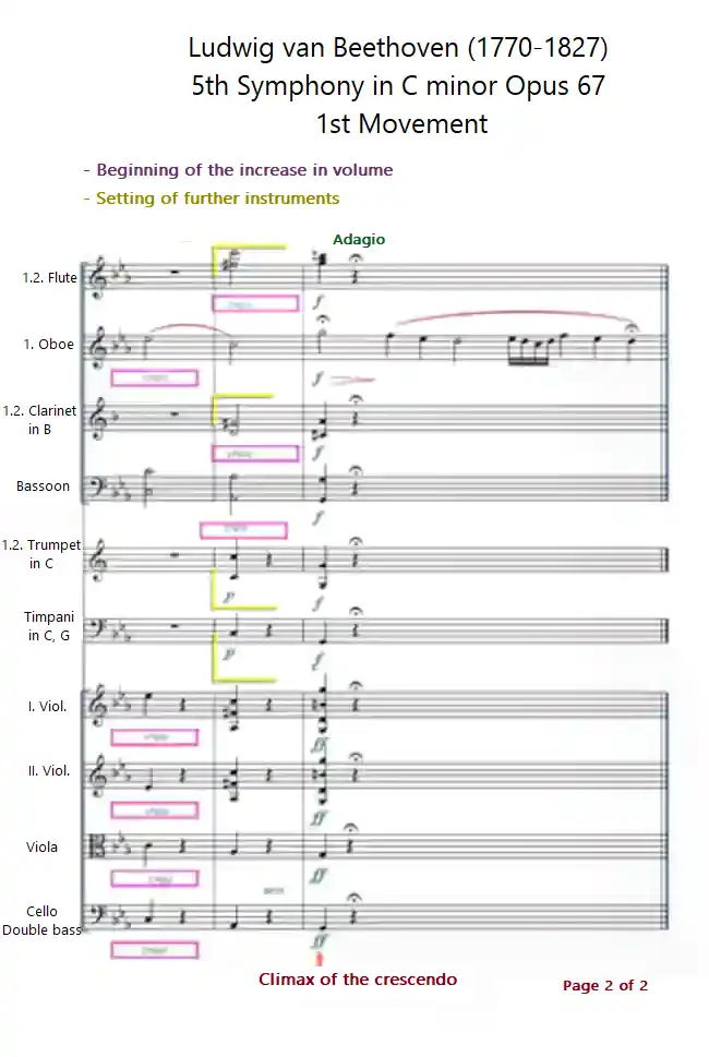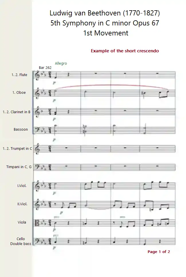 The following example shows a short crescendo. Suddenly a big tutti develops where it reaches its climax.