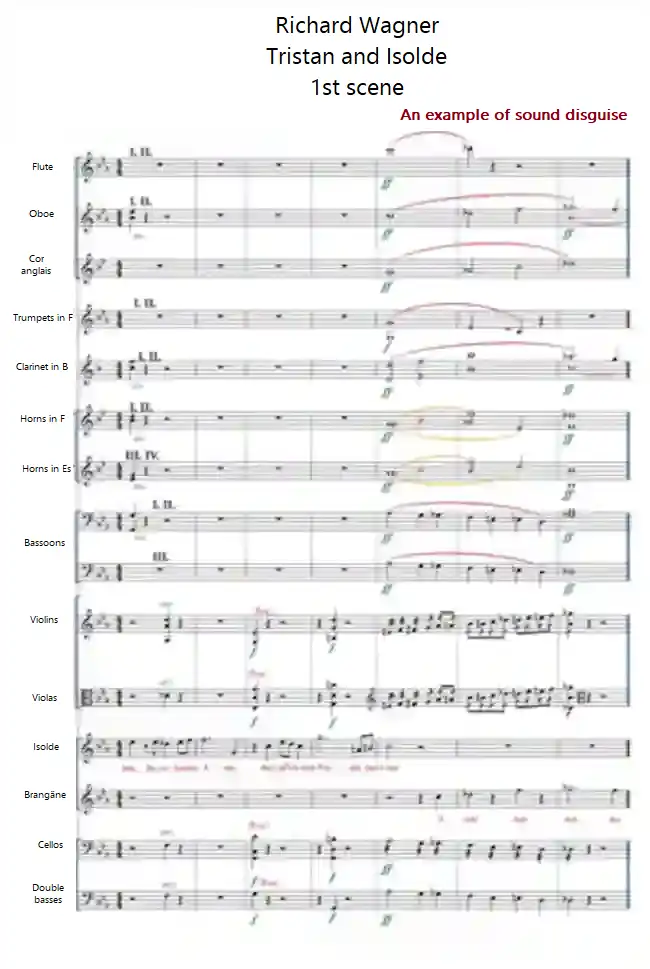 The ingenious thing about this technique of instrumentation lies in emphasizing and disguising chord tones at the same time. This technique makes it possible to seemingly ignore an expected chord and have another appear in its place.