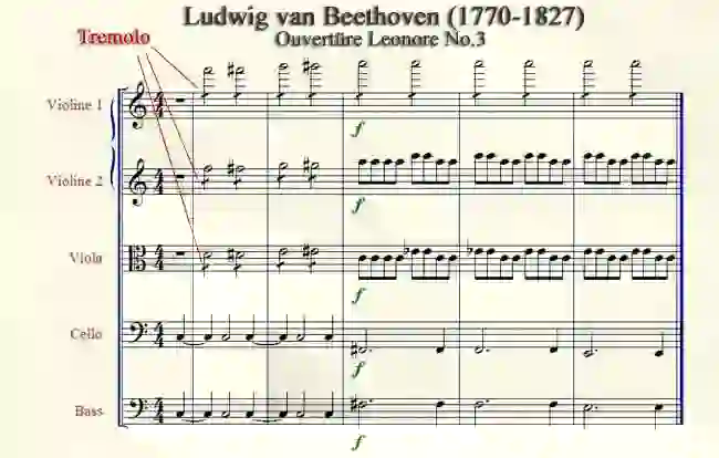 Striking or tremolosing notes in eighth notes would not have a good effect on a single instrument (e.g. a violin). In the choral setting, it gives the violins power, brilliance and fullness in a rapid tempo. And is therefore a very popular means of maximum power development.