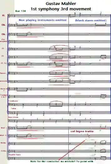 The special way of playing col legno tratto should always be used when the exact intonation is of secondary importance. If the overall character of the sentence should sound unclear and blurred. Such as after a crescendi before a morendo or after a climax.