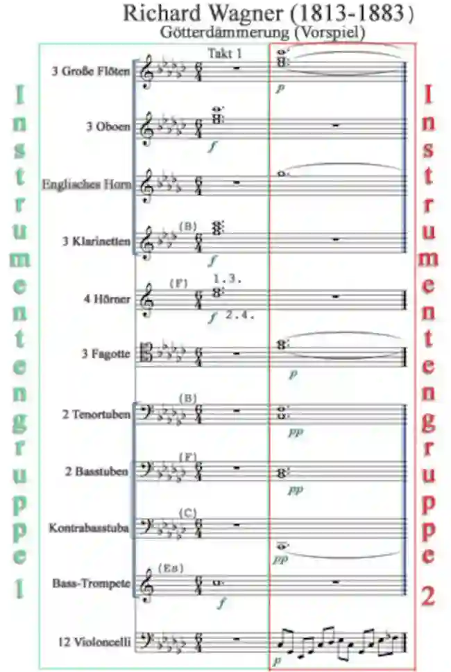 Auflistung der teinehmenden Instrumenten des 1 Taktes