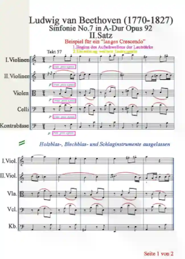 Ein langes Crescendo erhält man durch gleichzeitige Anwendung dynamischer Anpassung der orchestralen Mittel und Erhöhung der Anzahl teilnehmender Instrumente.