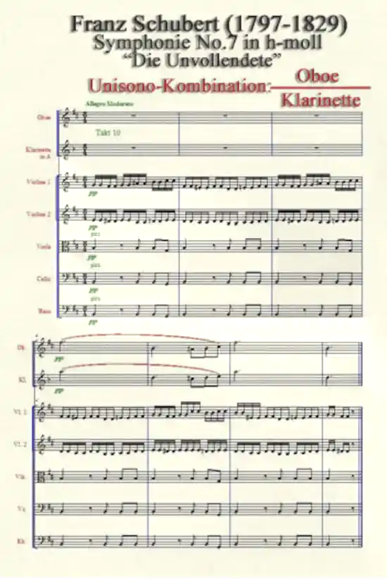 Es folgt ein Beispiel für die Unisono-Kombination der Oboe mit der Klarinette in ihrer klangvollsten Mittellage. Die Unvollendete von Franz Schubert.