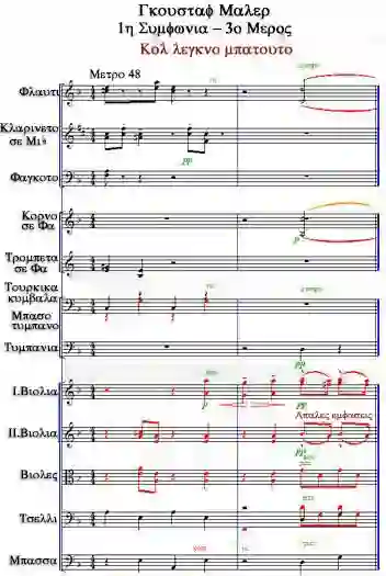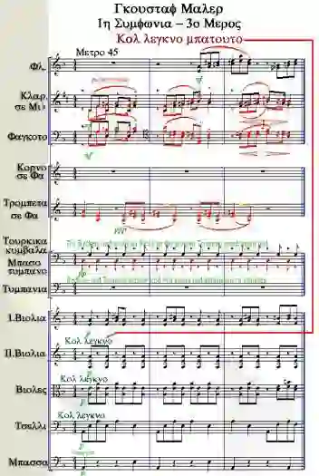 - Σημειώνεται ή ένδειξη με „col legno“ πάνω από το μουσικό πεντάγραμμο.