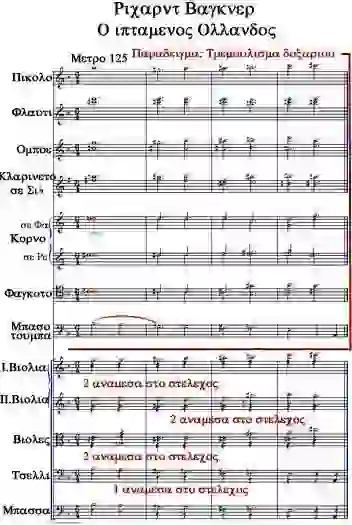 - Ανάμεσα στο στέλεχος 3 νότες, σε γρήγορους ρυθμούς. Σε πιο αργούς ρυθμούς 4 ανάμεσα στο στέλεχος. Επίσης, σε μη σαφές σημεία τον ακόλουθο όρο «trem.»:
